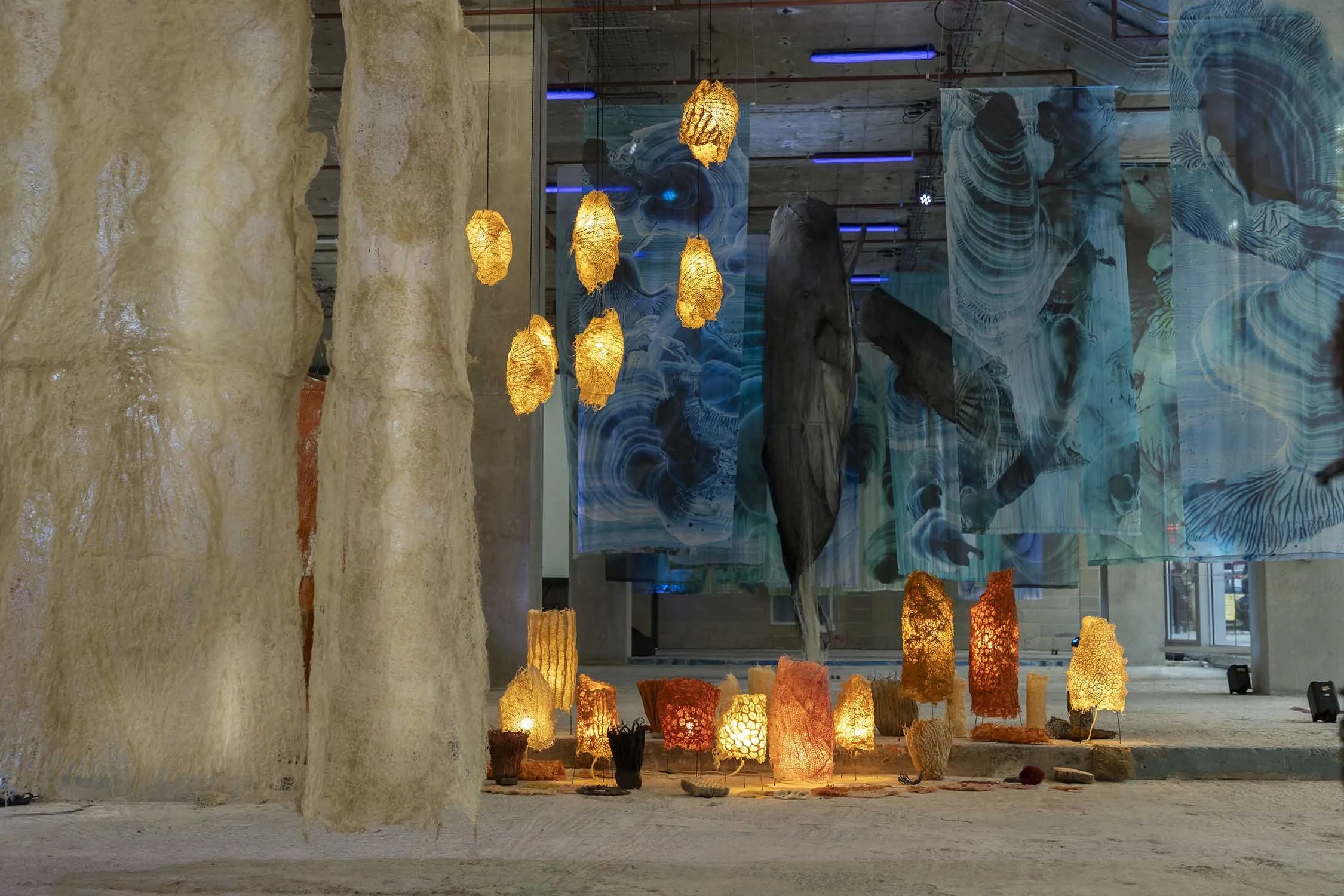 Root lamps exhibit at De Le Cuona, Pimlico Road.