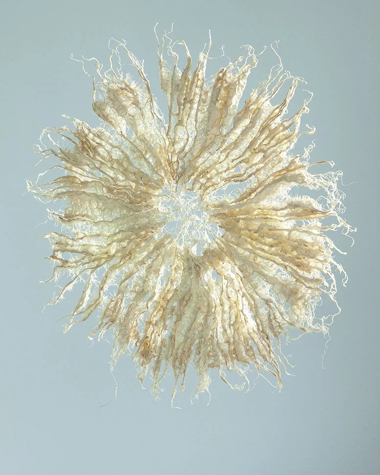 The roots are living threads that weave themselves through hand-carved beeswax templates, like yarn on a loom. They stretch, twist, and anchor to one another to form unique materials.